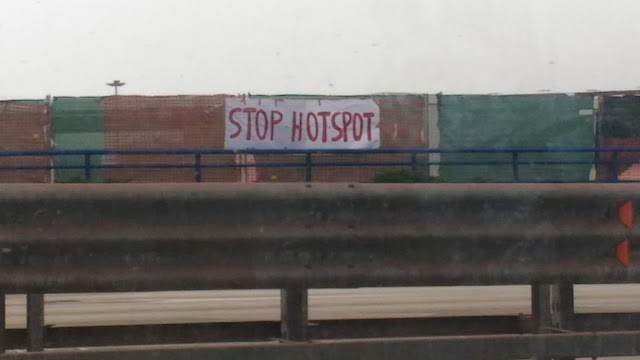 “NO HOTSPOT”, “RICONOSCIMENTO DEL DIRITTO D’ASILO A TUTTI I MIGRANTI di guerra ed economici”.